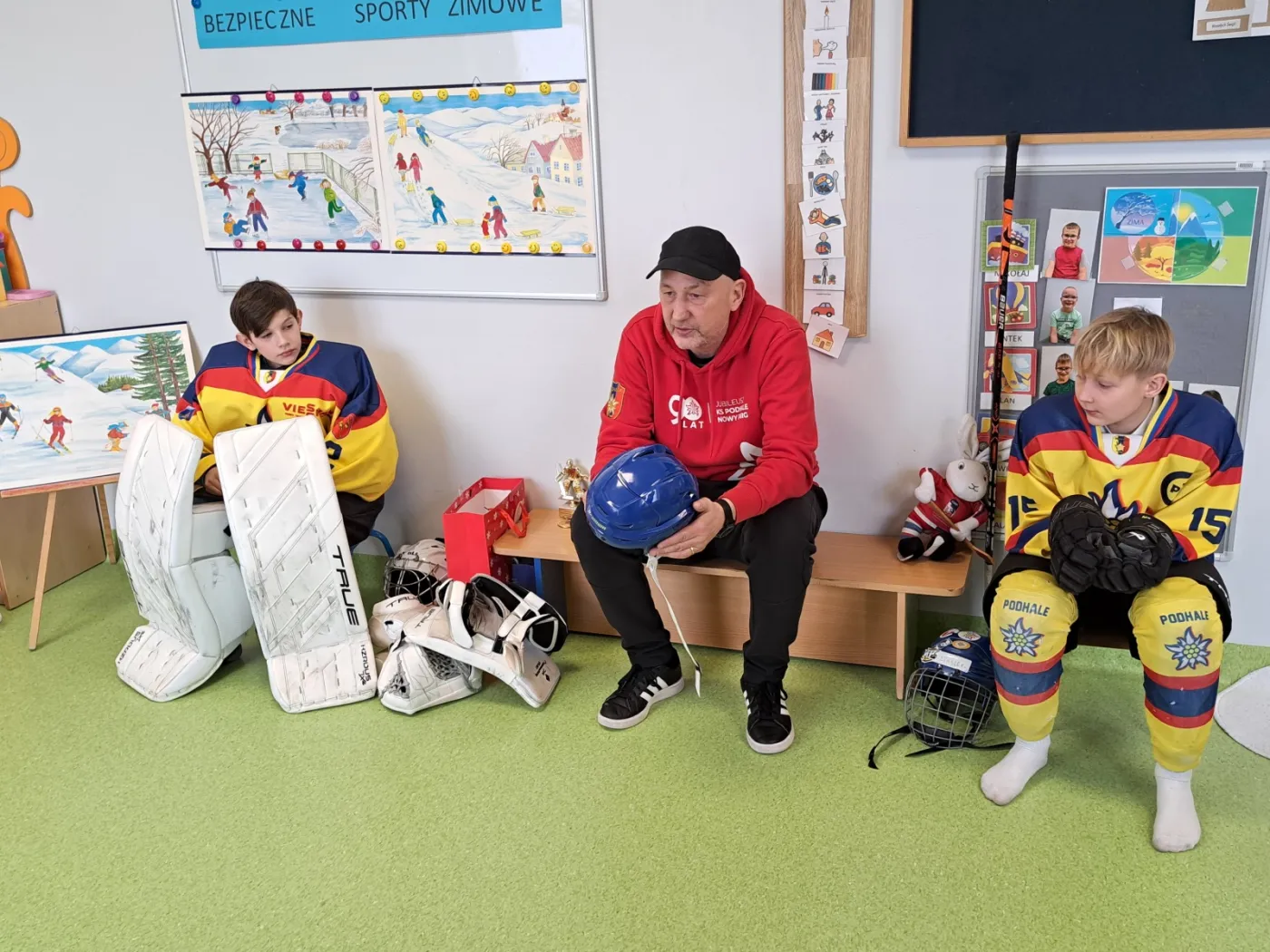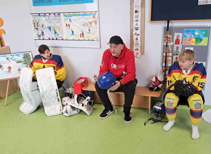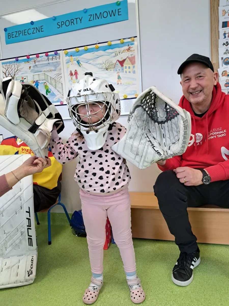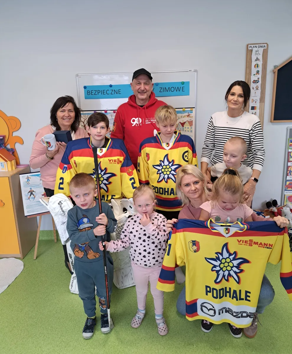 Delegacja MMKS Podhale Nowy Targ odwiedziła niedawno lokalne przedszkole. Nasz trener i olimpijczyk z Albertville 1992, Marek Batkiewicz, wraz z podopiecznymi z klasy sportowej SP nr 1 – Filipem i Staszkiem – spotkali się z dziećmi, by podzielić się sportową wiedzą. Opowiedzieliśmy maluchom o tajnikach hokeja, zasadach gry i niezbędnym ekwipunku. Przede wszystkim jednak skupiliśmy się na zasadach bezpieczeństwa podczas zimowych zabaw oraz promowaniu zdrowego stylu życia poprzez aktywność fizyczną.