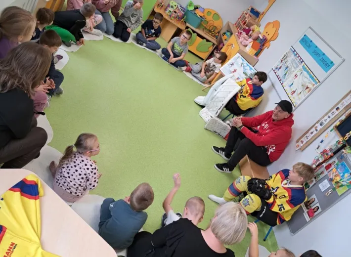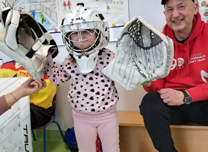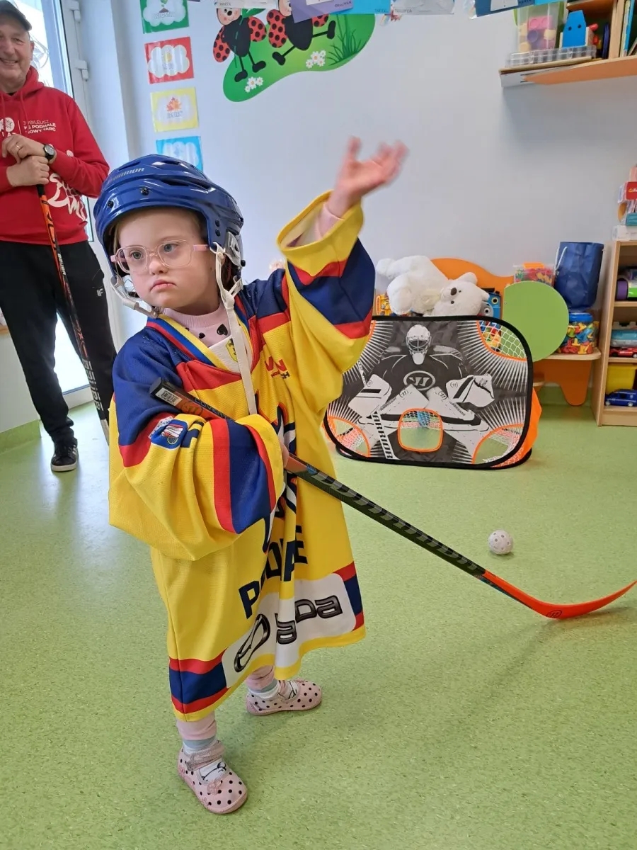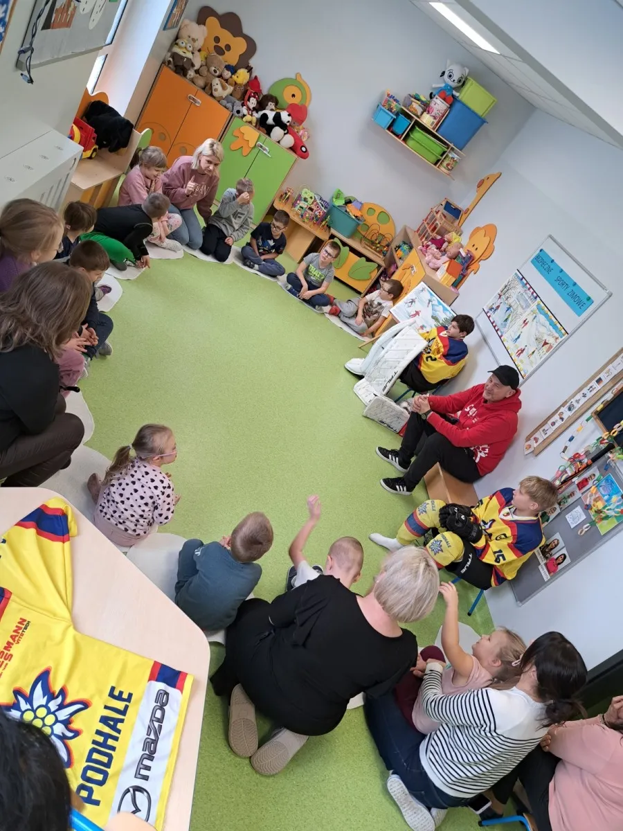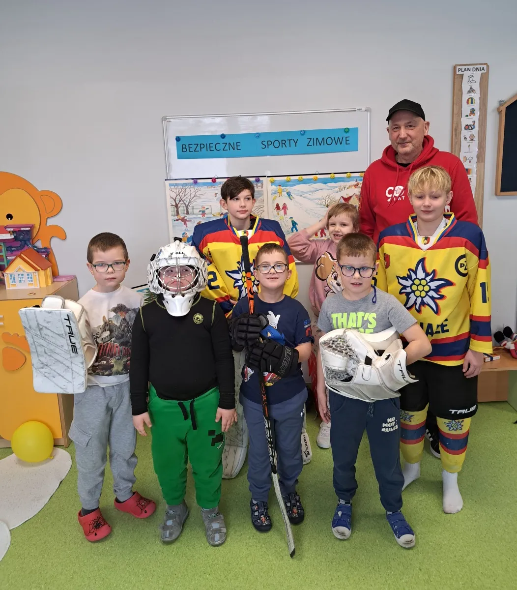 Wizyta obfitowała w atrakcje! Przedszkolaki z entuzjazmem oglądały profesjonalny sprzęt, przymierzały elementy stroju i pozowały do pamiątkowych zdjęć. Rozdaliśmy również drobne, klubowe upominki. Najwięcej radości sprawił wszystkim wspólny mini-mecz hokejowy. Dziękujemy za wspaniałe przyjęcie i fantastyczną atmosferę! Mamy nadzieję, że zaszczepiliśmy w dzieciach pasję do sportu i wkrótce zobaczymy się ponownie – tym razem u nas, na tafli lodowiska.