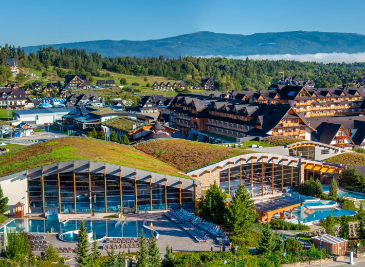 Hotel Bania Thermal & Ski to czterogwiazdkowy obiekt zlokalizowany u podnóża Tatr, oferujący komfortowe warunki wypoczynku, zaplecze konferencyjne oraz bezpośredni dostęp do stoków Kotelnicy Białczańskiej – jednej z największych stacji narciarskich w Polsce. Hotel słynie z połączenia tradycyjnej architektury góralskiej z nowoczesnością, oferując gościom nie tylko luksusowe pokoje, ale także wysokiej klasy zaplecze gastronomiczne i rekreacyjne.